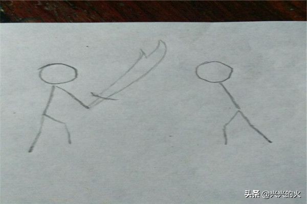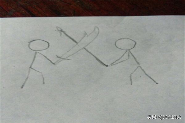 6.双方都拿上兵器,不过重点在于四肢动作的协调。(如图)