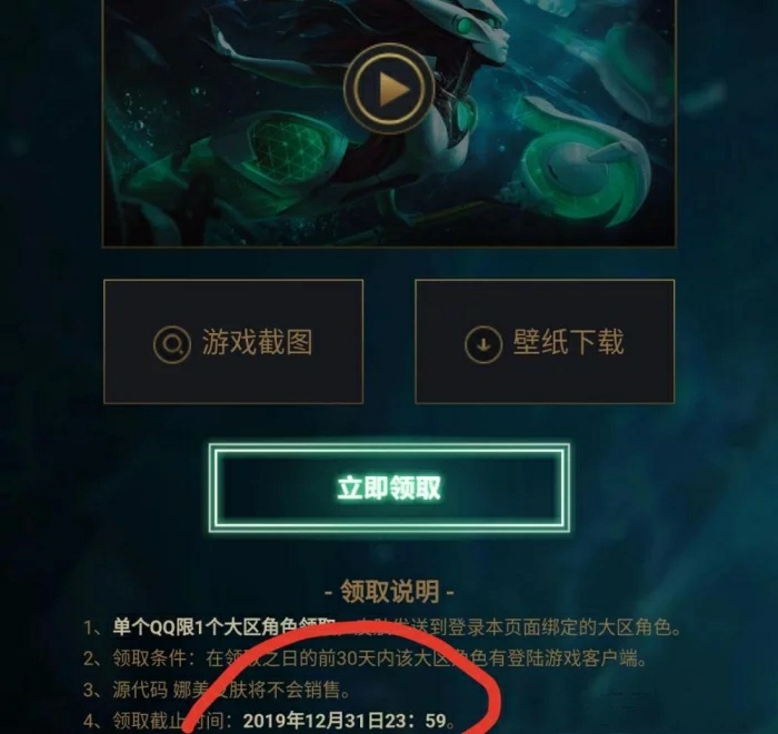 该皮肤也只能领取一次,更换大区是无法重复领取的。想要领取这款皮肤,前提是需要你在领取的当天,前30天内该大区角色有过登陆的迹象。而且这款皮肤官方也重重承诺,不会再次销售。喜欢玩辅助的玩家其实不要错过,不喜欢玩辅助玩家就当是收藏皮肤了。地址其实百度上都有列出,我也会在评论区下方进行留言。