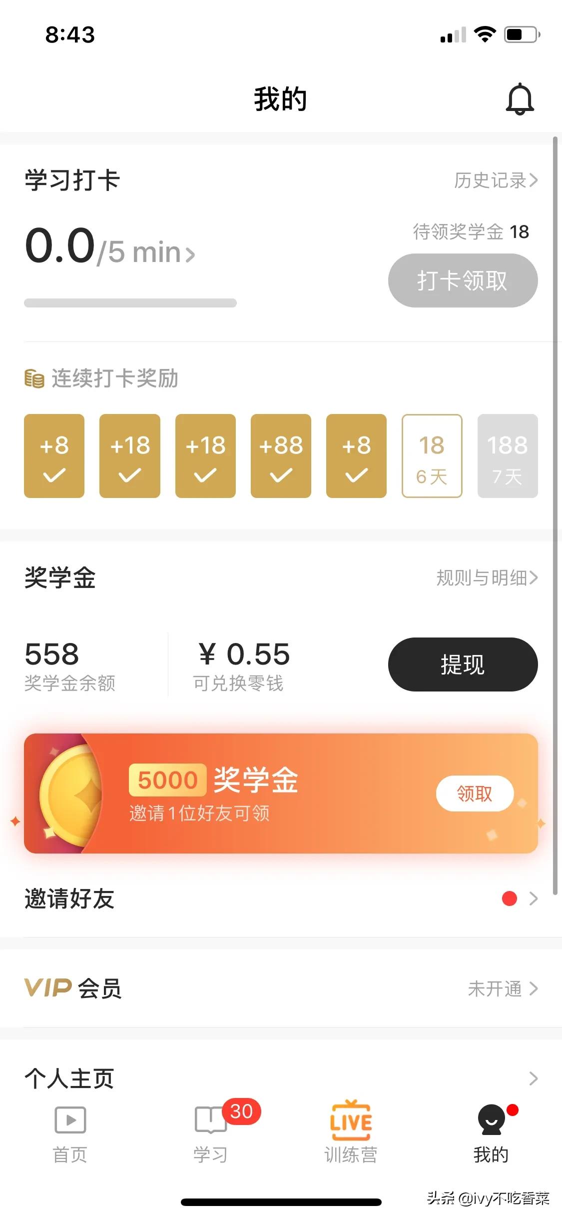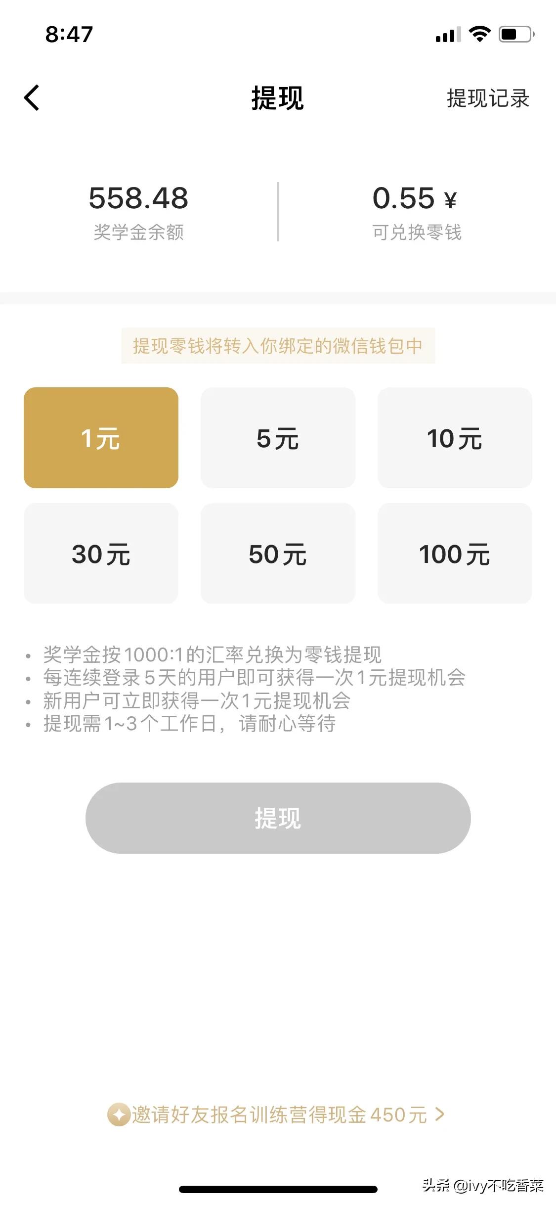 虽然我不是为了钱用这个软件的,但是这个软件的确让我坚持下来背单词了,因为只要哪天没打卡就会扣一点点奖学金。强迫症让我坚持下来了。