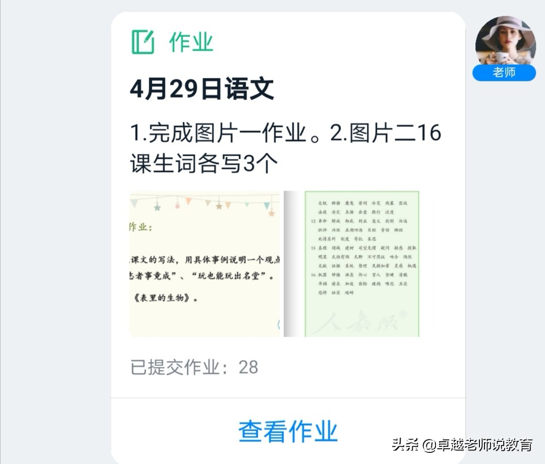 钉钉软件中的图文结合发布作业功能很好用。可以让我们每天课后在钉钉在线作业中,以文字和图片的形式发布作业任务,要 求提交时间,提交形式等。学生会马上收到作业布置提醒,而且作业的内容清晰明了。