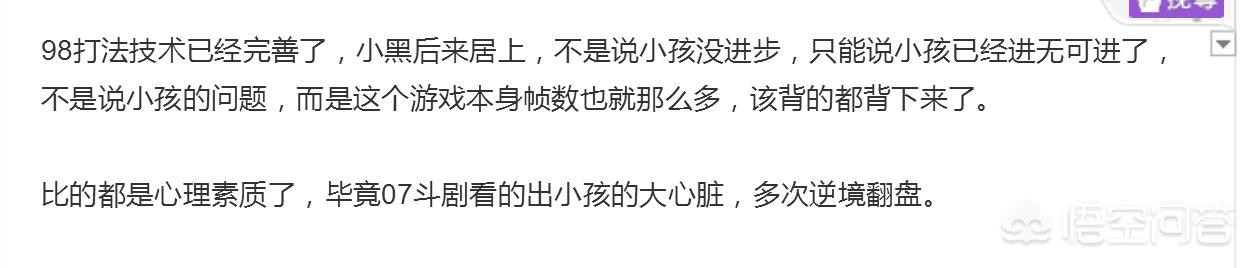 小孩曾卓君的98实力是经过世界级比赛检验的,当之不愧的世界第一。用三问都可以暴打国外选手。日本的98玩家也只能和小孩打个三七开。唯一有点竞争力的就是国内的大口,老黑,小黑等人。