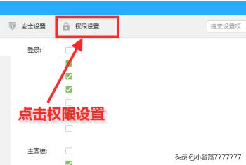 4、打开系统设置后,在顶部菜单中,点击最右边的权限设置。