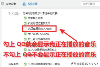 电脑登陆QQ----主菜单----设置----权限设置----个人状态----勾选正在播放的QQ音乐