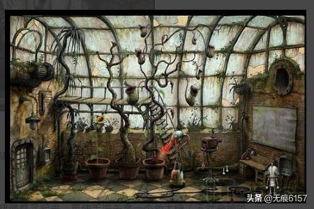 3、再同样加热最右边的植物,猪笼草长大了,感兴趣的话可以把其它植物也都加热一下。爬上楼梯,用那个黄叉子把猪笼草叉起来,再伸手进去拿一个放大镜(不然会被咬的)。然后等蝴蝶停在窗户前的栏杆上时,用照妖镜照它(哦不,是放大镜)。可以看到它身上的花纹,记下来。