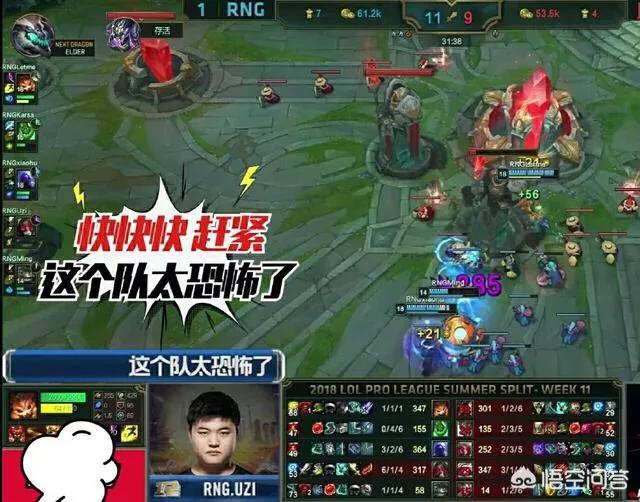 那是在英雄麦克疯里,常规赛最后一轮对阵JDG最后一局UZI在卡莎救主翻盘时罕见表示:赶紧推赶紧推,这个队太恐怖了……确实那几局的loken寒冰各种肉身开团,可能连UZI都有点懵了,如果第二局最后一波RNG没有闪现A基地,可能loken已经五杀守住了。