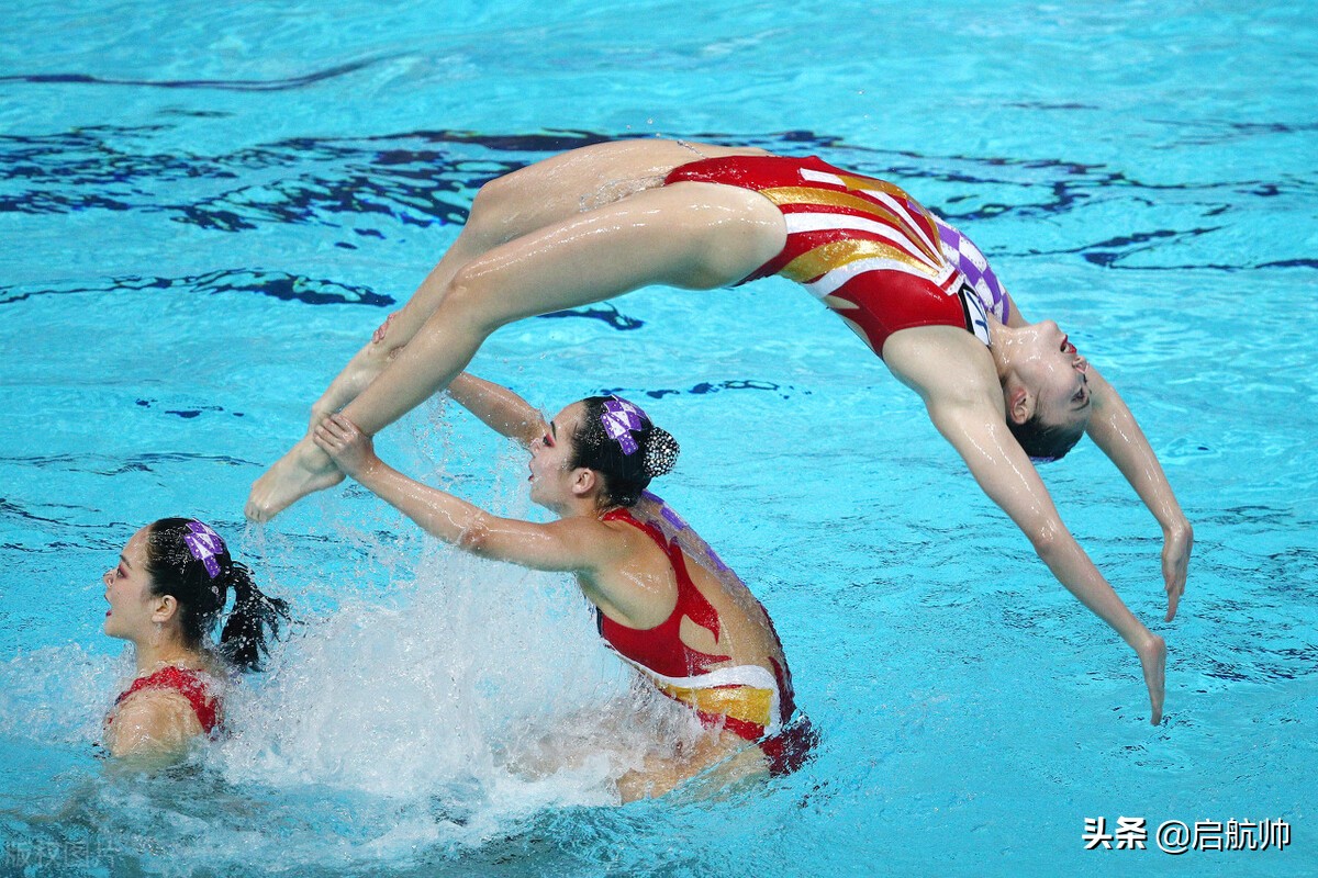 三、水上芭蕾;身材火辣、婀娜多姿的女运动员们,在水面上翩翩起舞,像足了美丽的天鹅。