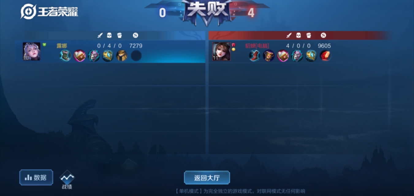 王者荣耀单机版中电脑的水平还是可以的,不认真玩的话恐怕还打不过人机。人机经济增长的速度非常快,而且人机的进攻欲望也非常强,与其说是人机,倒不如说是AI人机,单机版王者荣耀中的人机已经远超我们印象中的人机。在王者荣耀单机版中,可以免费使用8套满级铭文,而且对局数据不会同步到王者荣耀正式服。唯一的缺点就是无能选择人机英雄,人机英雄是随机的,小白今天玩了几把感觉遇到后羿、貂蝉的概率比较高。抱着练英雄的态度,不慎在与人机貂蝉的对局中,小白被人机貂蝉虐爆了,人机的进攻欲望太强了,甚至一度越塔强杀,这样的人机,恐怕已经打哭了很多青铜玩家!