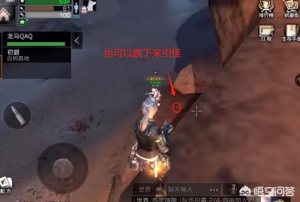 然后就是卡BOSS地形的选择,一定要是在高地上,最好后面有山体,这样方便撤退,离BOSS的距离不要太近,也不要太远。 太远不好引BOSS过来,很可能会中途返回,太近会容易卡不住,大家可以看一下图,这个距离比较适中。 此时最好准备一把射程比较远的武器,好引怪,如果没有准备那就只能等怪物慢慢溜达到你的射程之类了。
