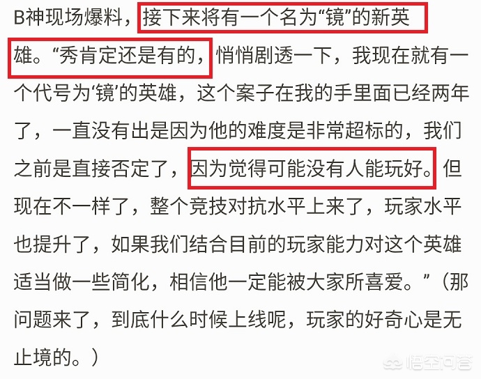 策划也给出了相应的答案(其实问题与答案个人觉得都是商量好的,本次活动主要是曝光一下这个新英雄),说其实早就有一个英雄在手里,因为强度太高而一直没上。