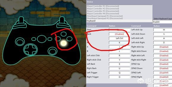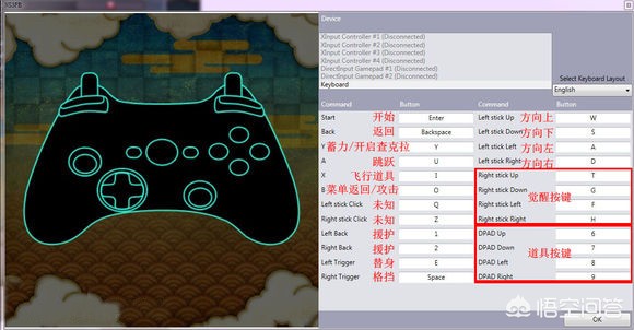 5.如图所示,当手柄亮光的地方也就是你鼠标选定的按键,更改喜欢的按键就可以了。依次全部更改即可,最后不要忘记点下面的OK键。