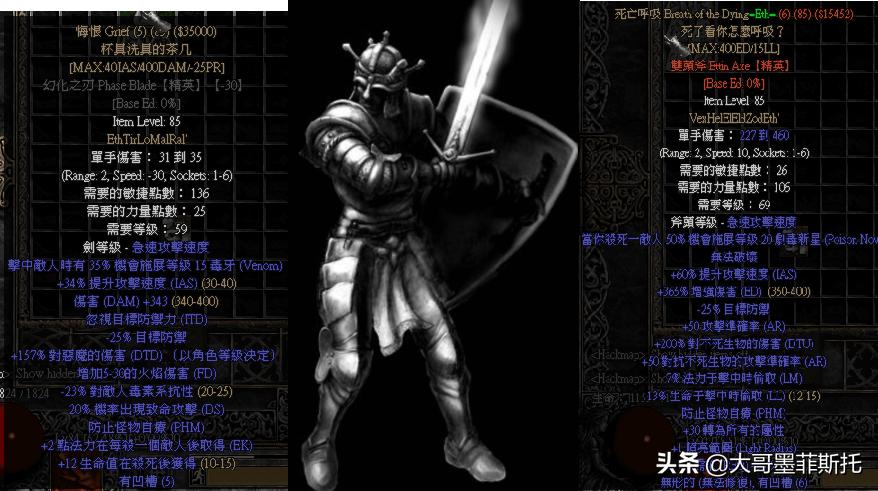 到了游戏后期主角有了大号的符文之后,就可以合成顶级的符文之语装备,这些装备就是暗金装备无法比拟的了,比较典型的有“刚毅甲”“无限”“谜团甲”“死亡呼吸”“悔恨单手武器”