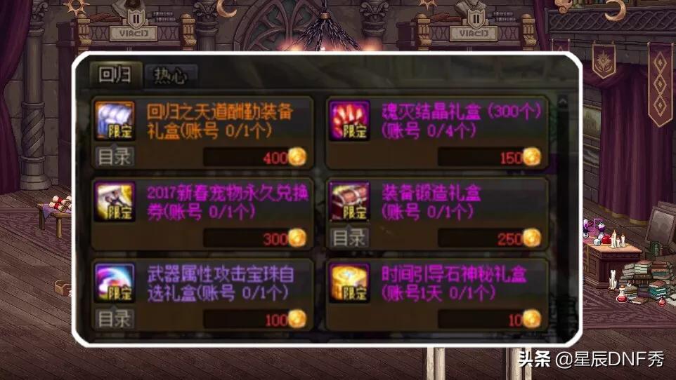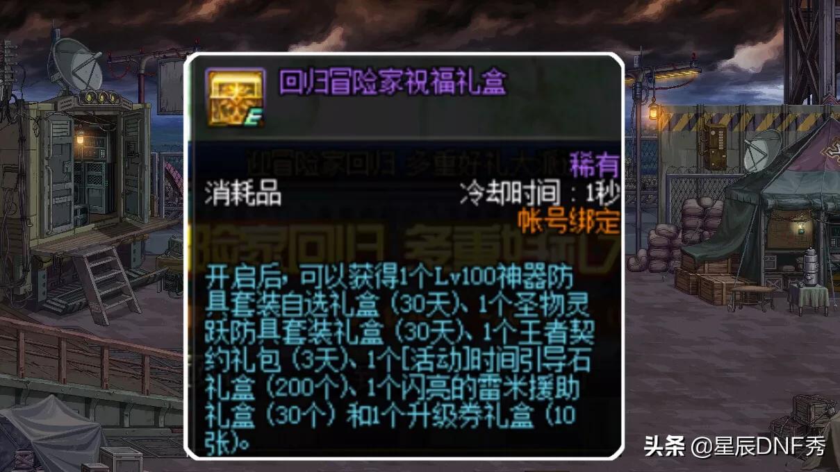 (2)回归祝福礼盒,100级神器装备,强度媲美泰波尔斯史诗,还有200个引导石和10张升级券;