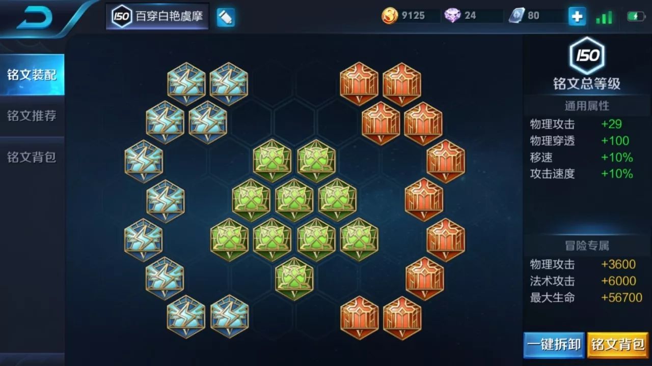 凯铭文搭配分析:(红色)无双:暴击率+0.7%、暴击效果+3.6%。(绿色)鹰眼:物理攻击+0.9、物理穿透+6.4。(蓝色)狩猎:移速+1%、攻击速度+1%。
