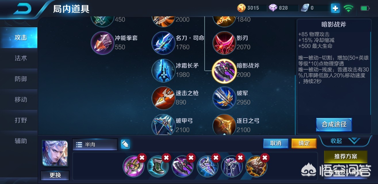 技术还不太过关的小伙伴慎用!贪婪之噬+急速战靴+暗影战斧+无尽战刃+破甲弓+破军。