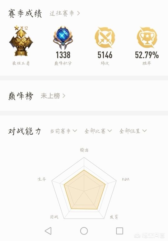 3、荣耀战力和段位也有关系,排位赛段位提升以后会增加英雄的战力上限(其实就是表现分+战绩分的上限),这个效果和巅峰积分类似。