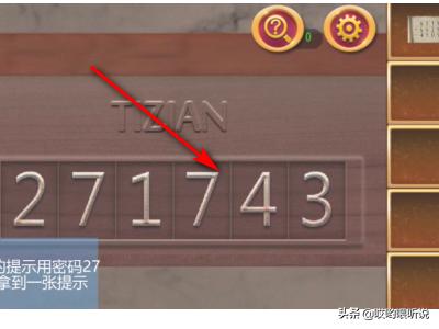 4、根据墙上的提示得出密码为:271743,输入打开抽屉拿到一张提示纸。