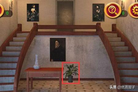 2、拿到雕像以后,先用雕像砸开桌上的花瓶,再将楼梯上左右两边的图拼好。