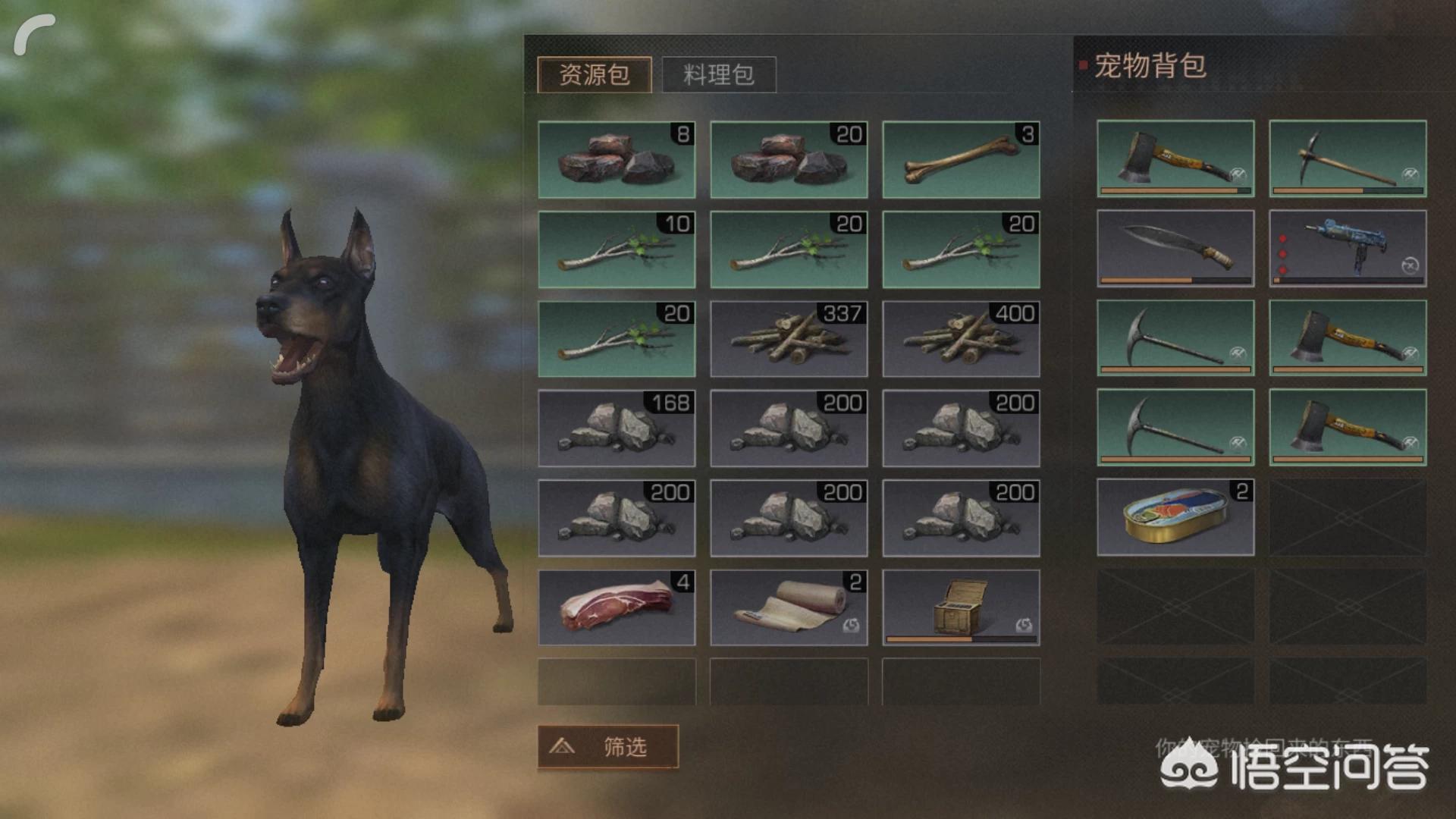 2第二个方法就有点绝了,小编一般都会出营地之前把狗狗包包放满斧头跟稿子,这样狗狗就没法再往它包包里捡感染物资拉。