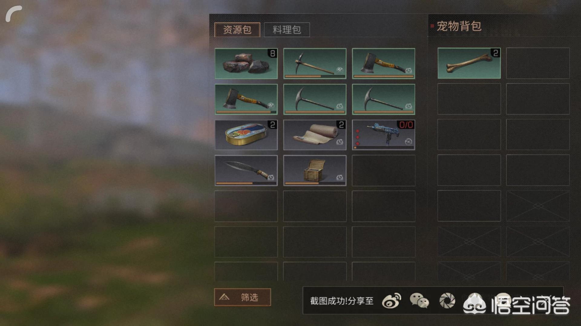 题主这个问题相信每一位玩家都很苦恼,每当你采完物资之后,想登机的那一刻,狗狗包里时时会多出几块感染的小树枝或者小骨头,影响游戏角色回营地的时间,那么有什么方法可以解决上面这些小问题呢,小编这里有两个方法