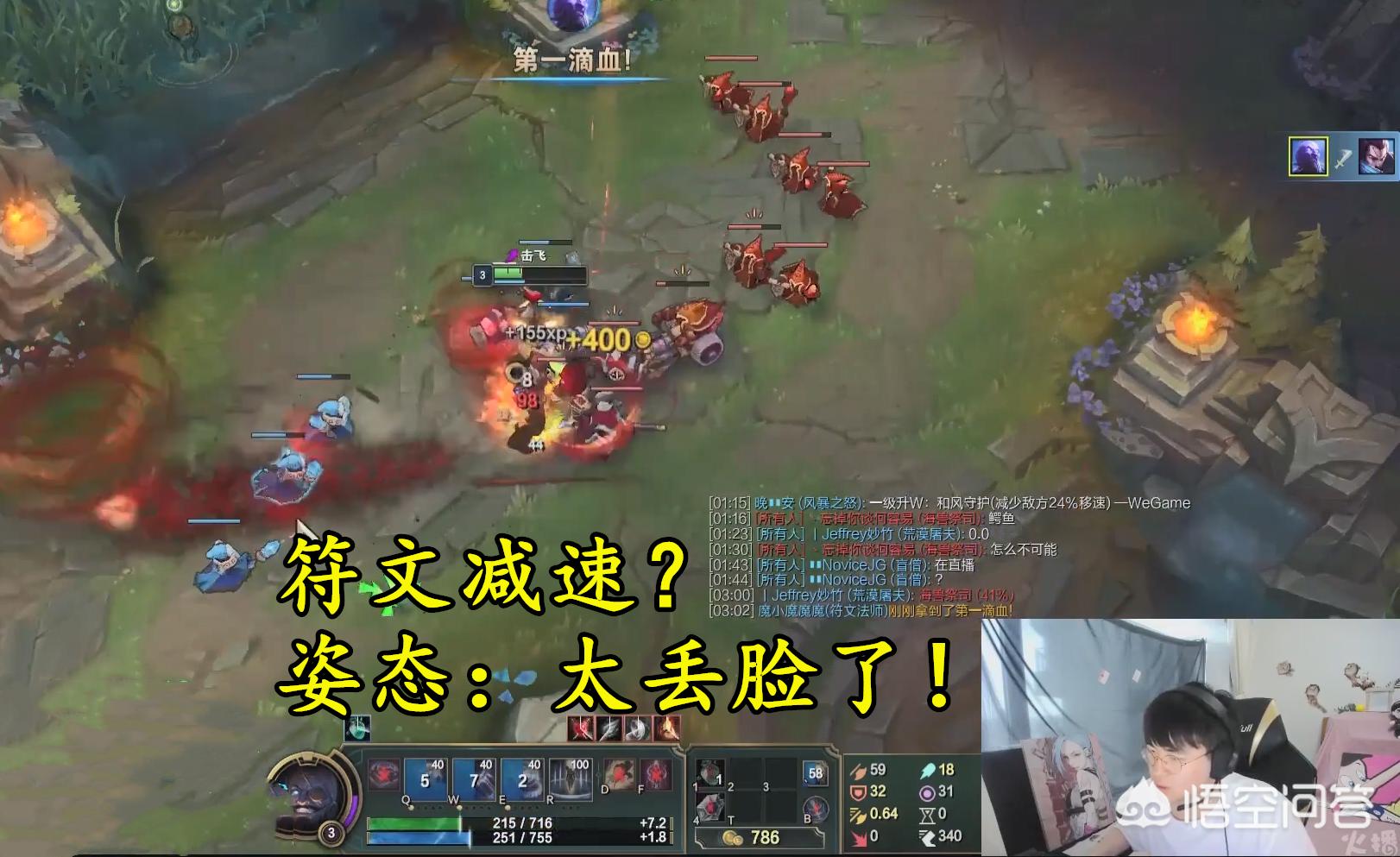 这一局游戏,姿态是用中单瑞兹对阵亚索。一级点W的姿态,疯狂用W干扰亚索补刀,一边施放还一边大喊:符文减速。看起来虽说很霸气,但是却并没有什么大用,最后连姿态自己都看不下去了,直接吐槽到:这也太丢脸了!3级之时,对面亚索因为打出征服者四层被动,于是直接上前与姿态站撸。可是姿态在血量领先的情况下,直接疯狂EQWQEQ将对面亚索带走,完成了一波单杀。四分钟时,姿态在河道抓到对面半血的打野,直接一套连招轻松带走,最后己方打野还来帮助姿态将对面亚索送回家。姿态再次推线,吃掉几层塔皮,迎来大优势。