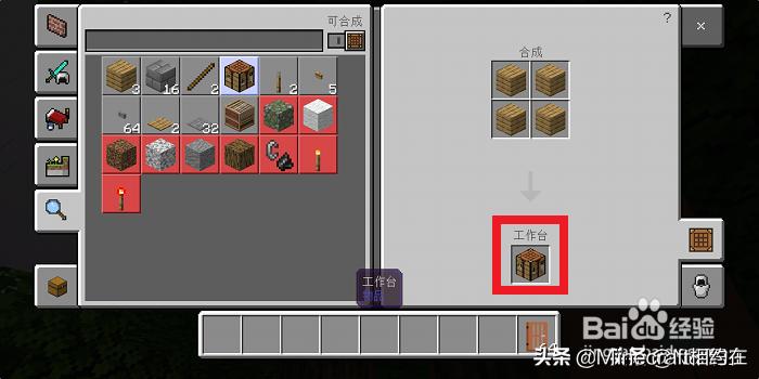1、撸树,撸很多的树,做一个工作台和基本工具:斧头、稿子,铲子,剑。用剩下的木板简单的搭一个火柴盒,凑活呆一晚