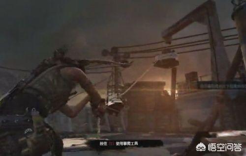 《古墓丽影9》中的劳拉身手敏捷,攀岩什么的都不在话下,在打完某关boss后,会给你一个攀爬绳索,射到重物之后出现一个图标,向右指的,许多人不知道接下来该按什么键,一个劲的按E键即可。