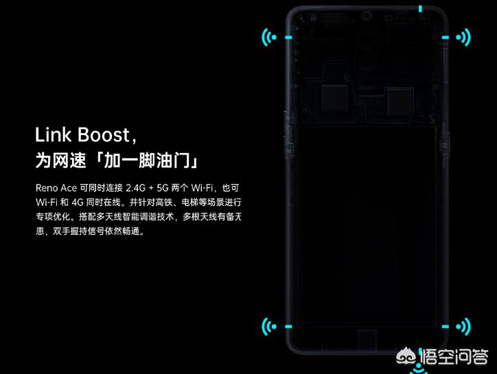 其次,Reno Ace还有LinkBoost这种网络加速优化技术,可以同时连接2个Wi-Fi热点,实现网速倍增和无缝切换。并且智能多天线动态调谐2.0多路LTE天线动态切换,优化了手机的连接速度、稳定性与功耗,解决在高铁、电梯环境这样信号不稳定情况下的手机网络连接问题,保证更流畅的网络连接体验。