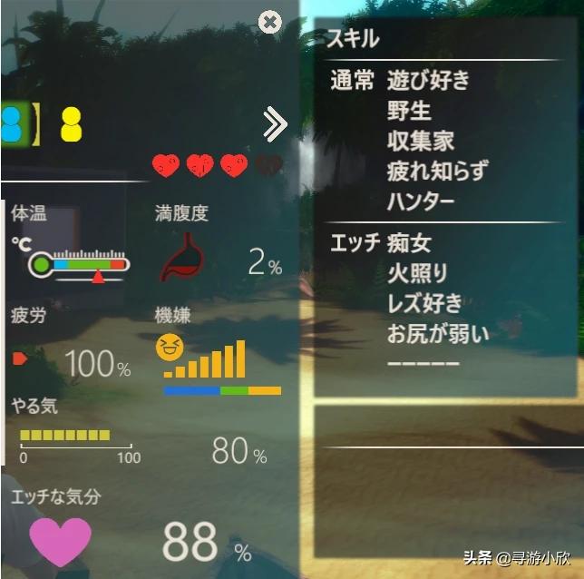 1.与妹子谈话后会获得一把破损钓鱼竿,需要收集木头修补。收集好流木后制造鱼竿解锁信息选项,这里可以给人物装备道具,还可以看妹子的状态,三心后还会解锁心情和干劲状态。