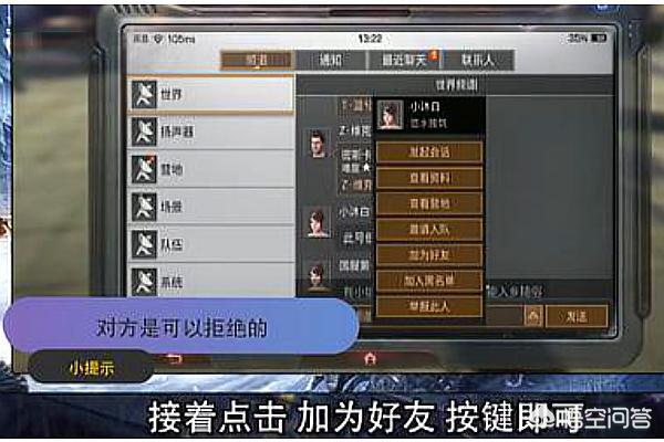 3、如果有想要加为好友的玩家,点击该玩家,此时会弹出有关此玩家的对话框。