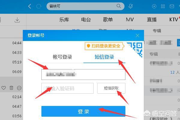 3、然后会弹出一个登录账号的页面,选择验证码登录,按提示输入手机号码,获取验证码后输入,点击登录即可: