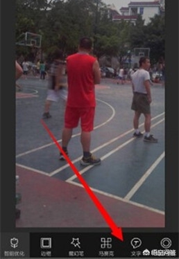 3、选中要添加水印的图片后,在图片页面下方的工具菜单,选择“文字”按钮。