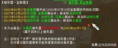其实被“水晶宫”合并的服务器还有很多,早期一起出现的“宝象国”就是其中之一。虽然也是02年开服,但是后来和“车迟国”、“花果山”等服务器合并为“剑仙风骨”,最后被纳入了水晶宫。沐辰曾经也在“车迟国”服务器玩过一阵子,不过后来因为种种原因弃坑换服,如今在看到这些熟悉的名字,总是会有种莫名的伤感~