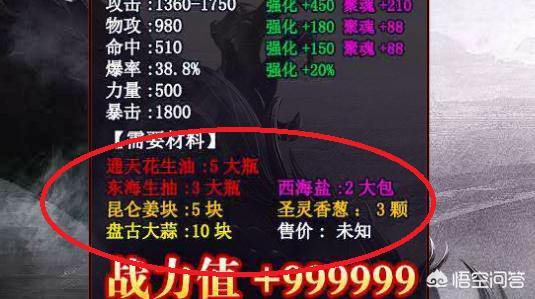 需要材料:通天花生油5大瓶,东海生抽3大瓶,西海盐2包,昆仑姜块5块,圣灵香葱3颗,盘古大蒜10块,售价:未知。