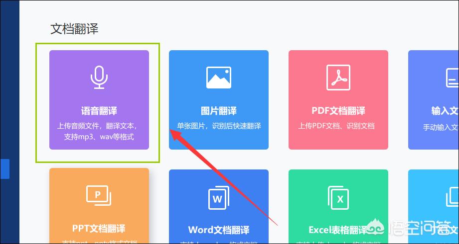 步骤三:在文档翻译功能的页面中,有多个翻译功能供我们选择,而我们要选择的是文档翻译中语音翻译功能。