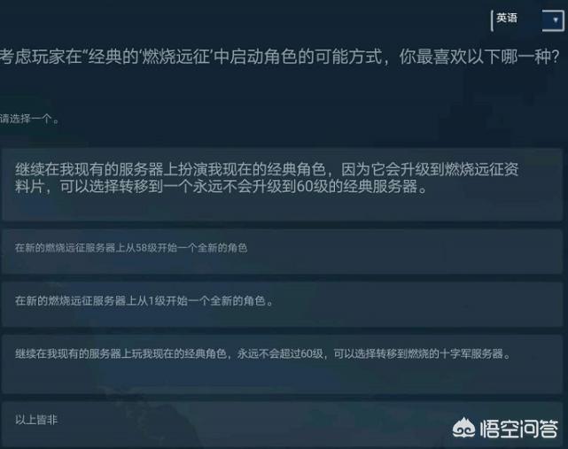 今天暴雪在外服进行了一个玩家调查,而该调查的内容就和《燃烧的远征》怀旧服有关,并且该调查并不是关于是否有必要开放TBC版本怀旧服的,而是直接问玩家TBC版本希望使用何种升级方式,第一种为初始等级58级,第二种为1级开始,第三种为直接转移角色到新版本服务器中。鉴于魔兽世界怀旧服升级如此痛苦,而玩家们又想保留60级的角色,所以TBC版本怀旧服的最终升级方案极有可能是初始等级58级。当然外服玩家都比较喜欢RP感,思维又比较清奇,因此也有可能会选择1级开始重新升级。