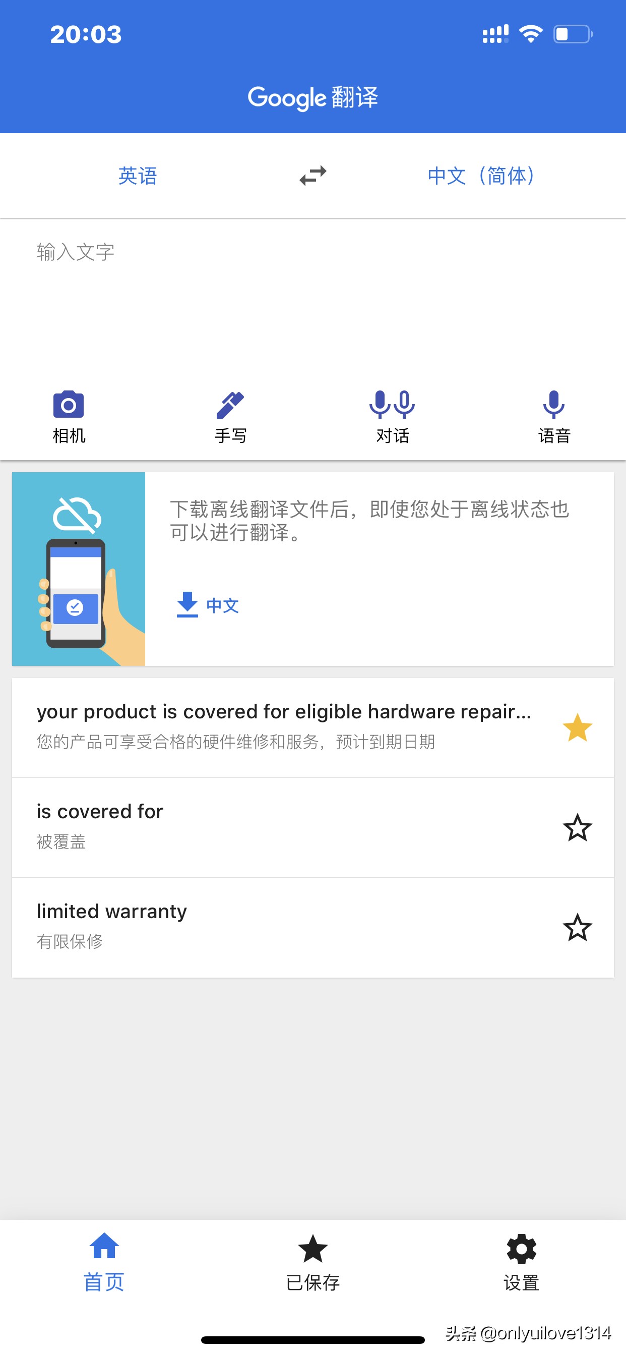 图1的相机翻译功能应该是题主需要的,可实时翻译,使用也很简单,点击图2中的相机然后对准要翻译的目标即可。