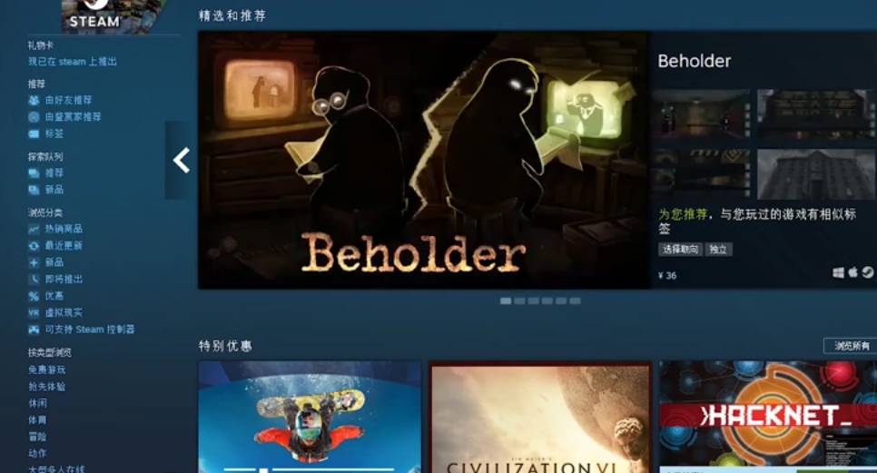 绝大部分热门单机游戏都可以在Steam上找到,而且提供了便捷的游戏搜索和购买系统。