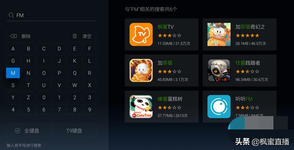 先把电视系统升级到最新版本,然后到电视自带的应用商店里,搜索下载安装【欢视助手】,接下来在欢视助手里搜【枫蜜直播】安装,然后就可以用枫蜜直播看电视台直播了