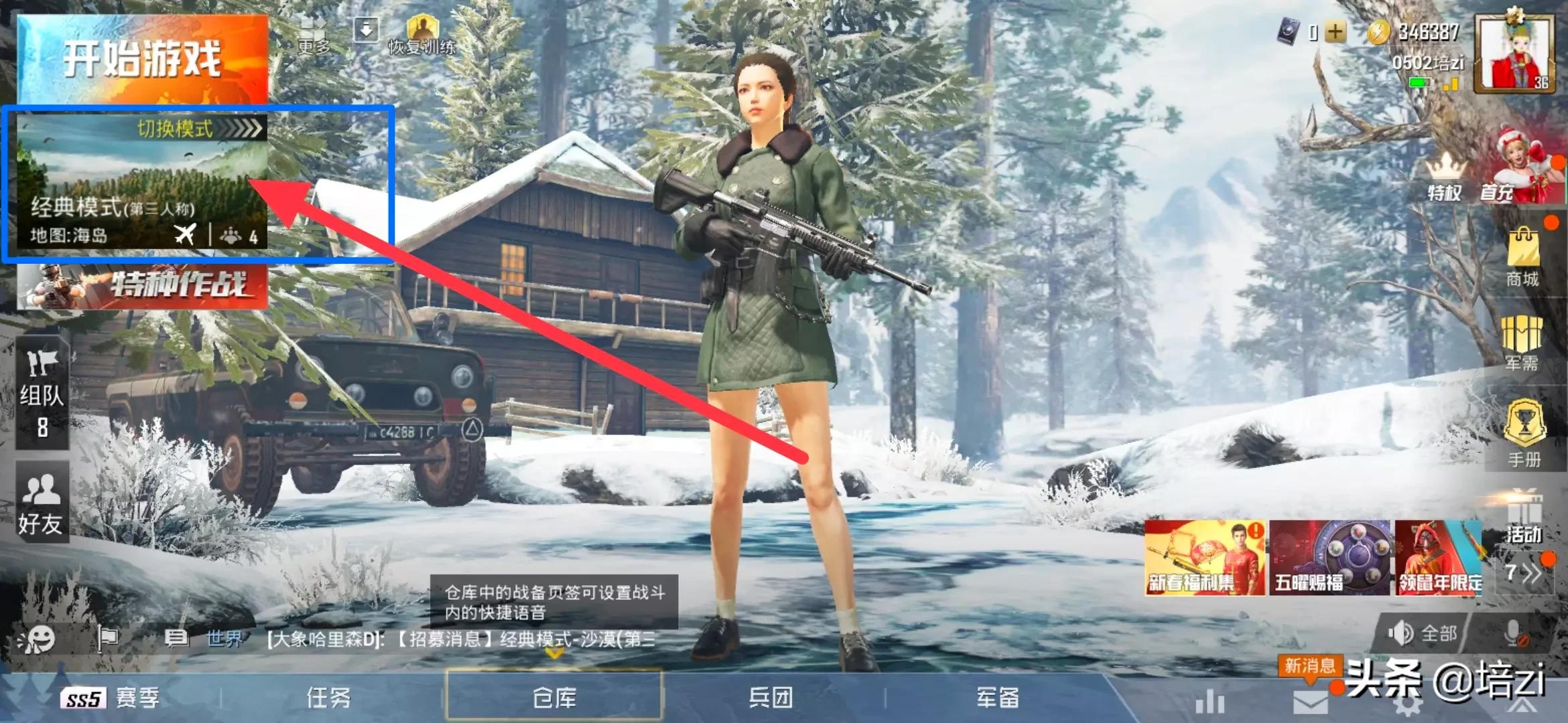 之后是拿一把顺手的枪,不推荐556系列,762 维克托 喷子 妹控首选。也可以拿冲锋狙随便加个副武器。
