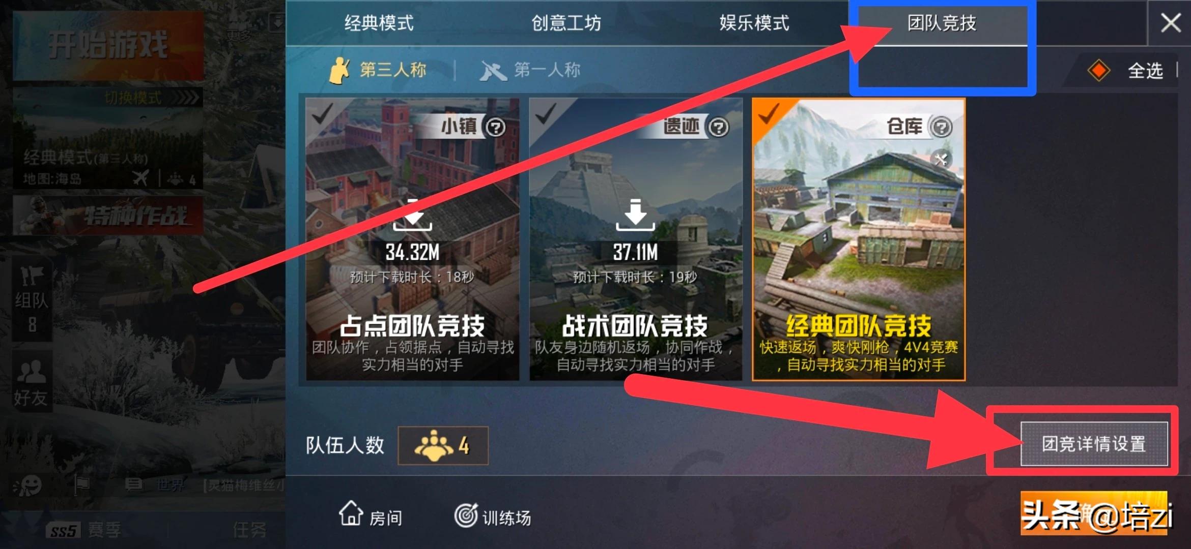 和平精英团队竞技,这个模式非常适合练习各种枪法,不仅可以练习压枪,还可以练习一些身法。由于团队竞技模式只有第一人称模式,所以玩家们在练习压枪的同时,可以多尝试探头闪身射击以及移动走位射击的枪法,对于玩家们的实战操作非常有帮助。