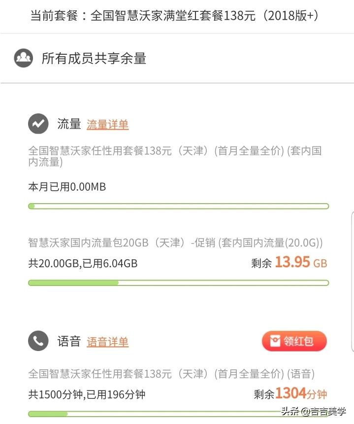 在这个套餐中基础套餐是每月所谓的不限量的使用,但是40g之后进行限速,同时,语音可以达到每个月1500分钟的免费使用,家中的宽带可以达到300M的速率,这个套餐可以绑定四张家庭成员的联通卡,共享套餐的内容在我升级之后,每个月增加了20g的流量,也就相当于是每个月进行60g之后的限速,同时,家庭中使用的宽带达到了500M的速率,而加量不加价,费用为138元,没绑定一张卡,增加两元。在每个月交话费的时候只需要主卡去交费,其他所绑定的卡片都不需要去进行任何的交费设置。