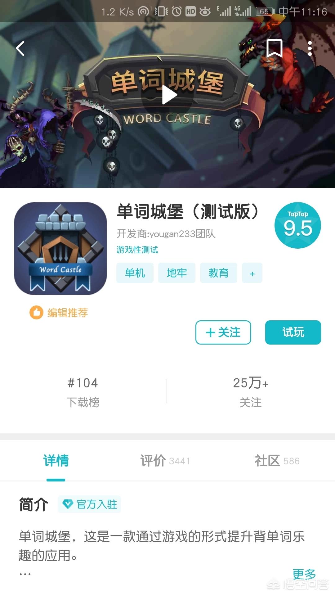 楼主您好,taptap上有一款叫做单词城堡的游戏,评分非常高。是一款通过游戏来提升背单词乐趣的游戏,由独立团队精心制作的英语学习软件,区别于传统的背单词应用,更加关注于激发用户对背单词的兴趣。拥有丰富的词库,全方位的英语学习环境,完全自由的冒险之旅,等待用英语词汇解开的宝藏。