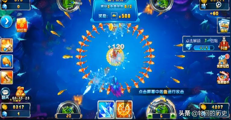3、使用道具: 途游捕鱼里有丰富的道具可以给我们选择,炮塔旁边的2个性价比最高,也是我用的最多的,BOSS来了用追踪,大鱼要是很多,来不及打,也可以冰冻。