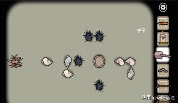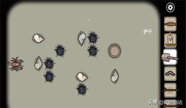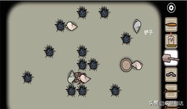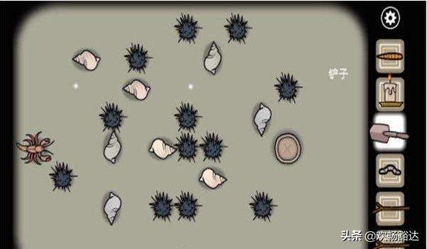 2、我们可以看到很多的贝壳,这些贝壳的尖端都指向一个固定方向,游戏规则就是使用贝壳引导寄居蟹避开刺球,到碗里来。
