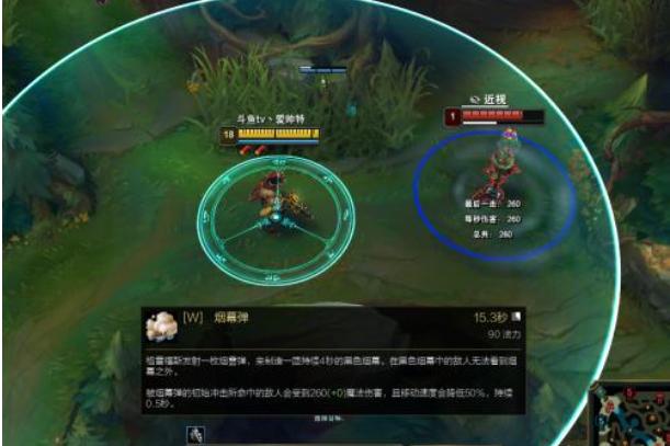 因为男枪W技能机制的问题,在w烟雾弹技能释放的区域是丧失视野的,可以算的上是一个致盲的新思路其作用和奎因的Q技能类似。不过由于烟雾弹的技能范围很小所以只在那一小片区域有用,位移出那片区域就可以看见了。