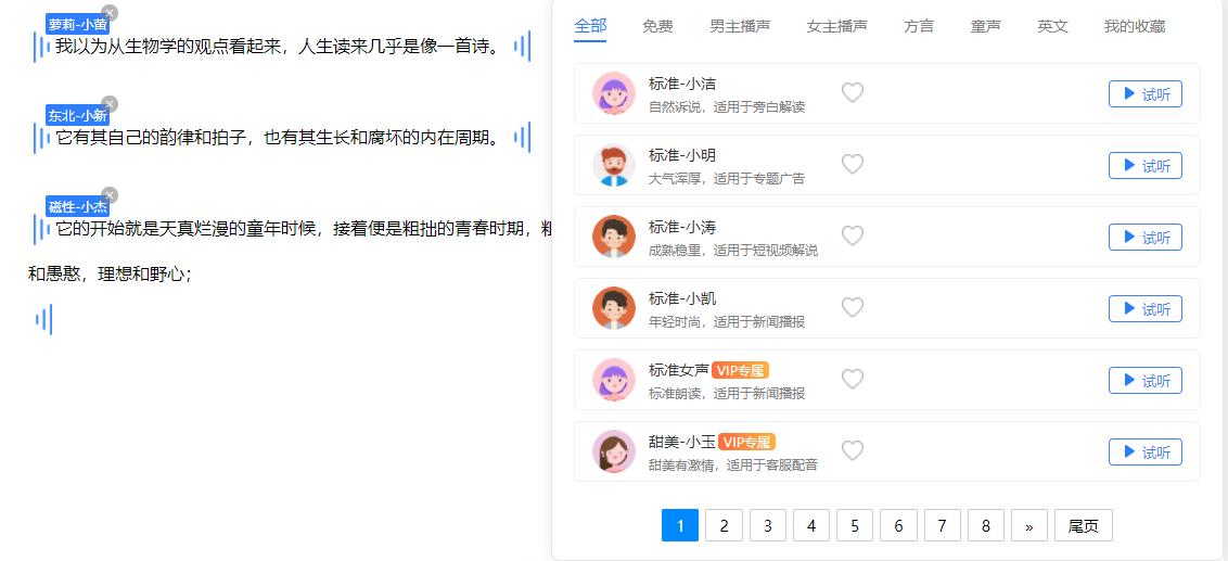 还有海量音色库:怀旧、欢快、激情、恐惧、惊讶、抒情、伤心等系列情绪海量音色库,近千种音色,覆盖多种场景,支持单人,多人配音互动方式,随心选。