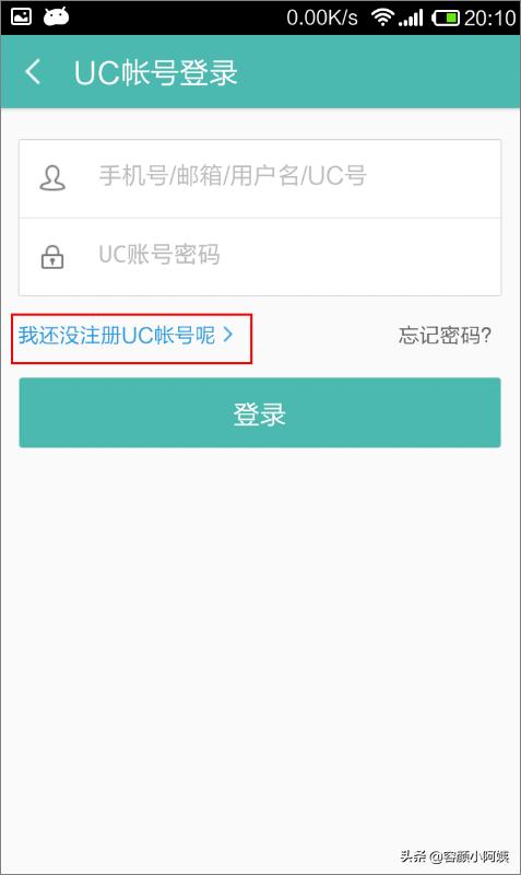 4、这时,会弹出UC帐号的登陆界面。点击“我还没注册UC帐号呢”。