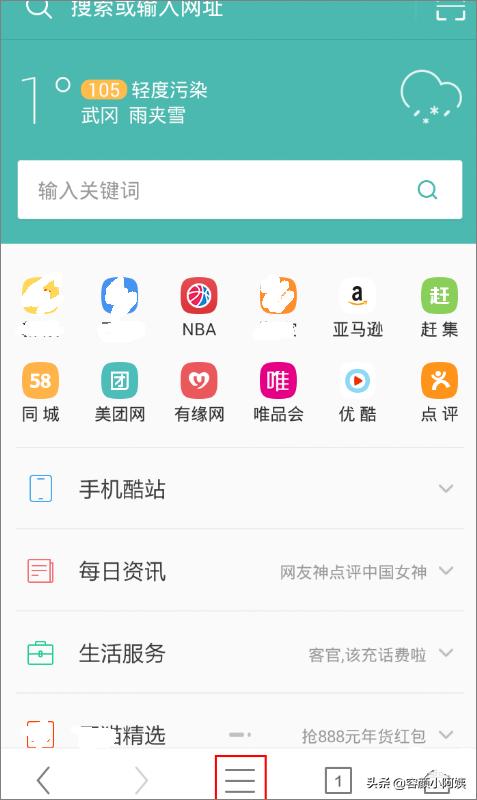 1、在手机上点击UC浏览器图标,打开UC浏览器,然后点击浏览器底部的三条横线图标。