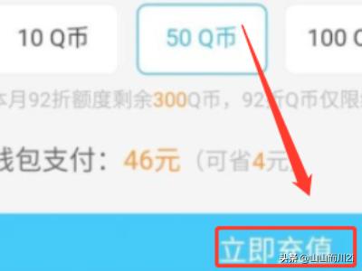 4、我们进入到充q币这个选项之后,我们直接选择需要充值的金额,然后在直接点击下方的立即充值这个选项就可以。