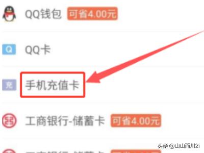 5、然后在我们手机页面所跳出的支付方式中,我们可以看到有手机充值卡这个选项,然后我们直接选择手机充值卡这个选项。